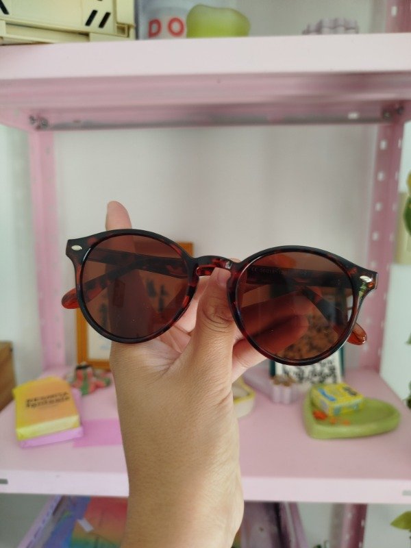 Anteojos de armazón de acetato carey y cristales marrones, sin graduacion.
