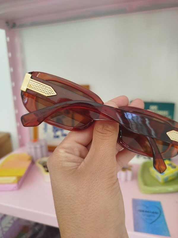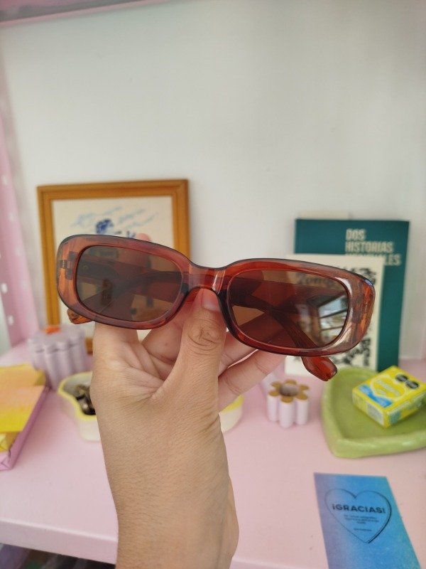 Anteojos de sol de armazón de acetato y cristales marrones oscuro. Cuentan con protección uv 400, 100% de protección solar.