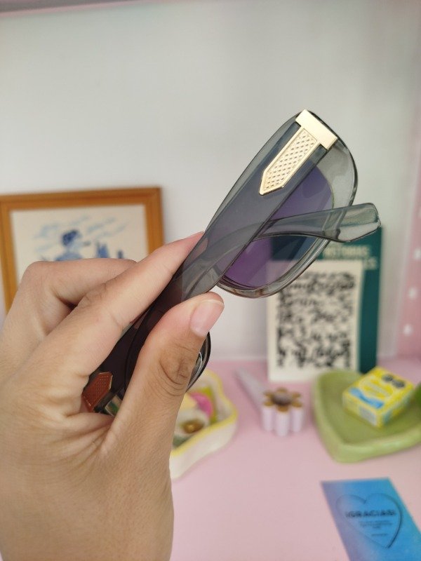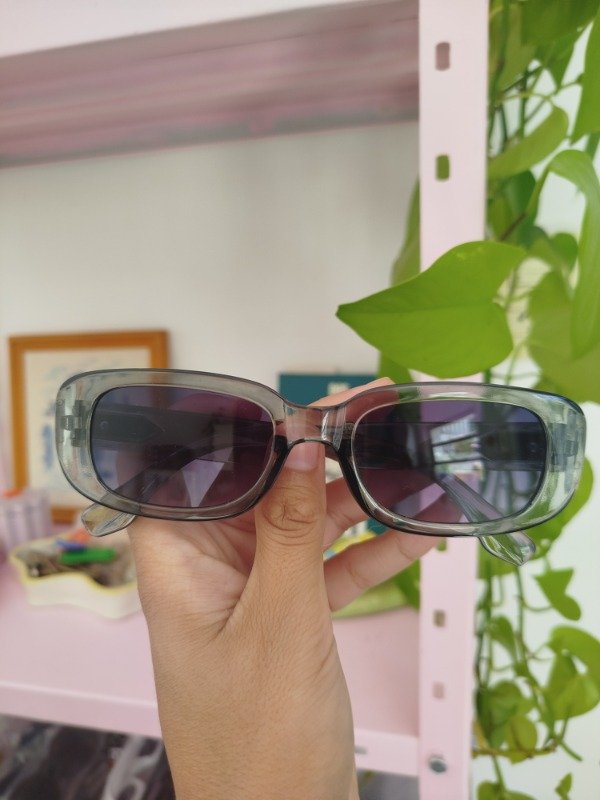 Anteojos de sol de armazón de acetato gris y cristales negros . Cuentan con filtro uv 400, 100% de protección solar.