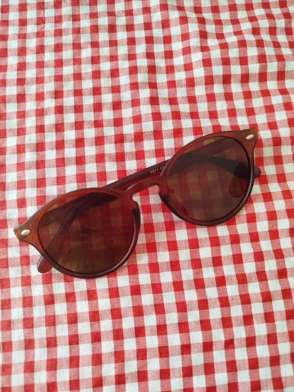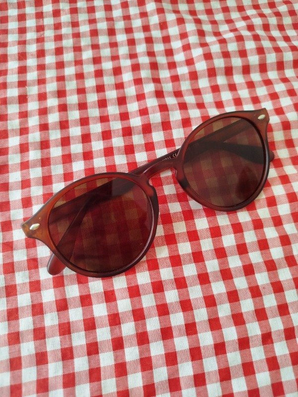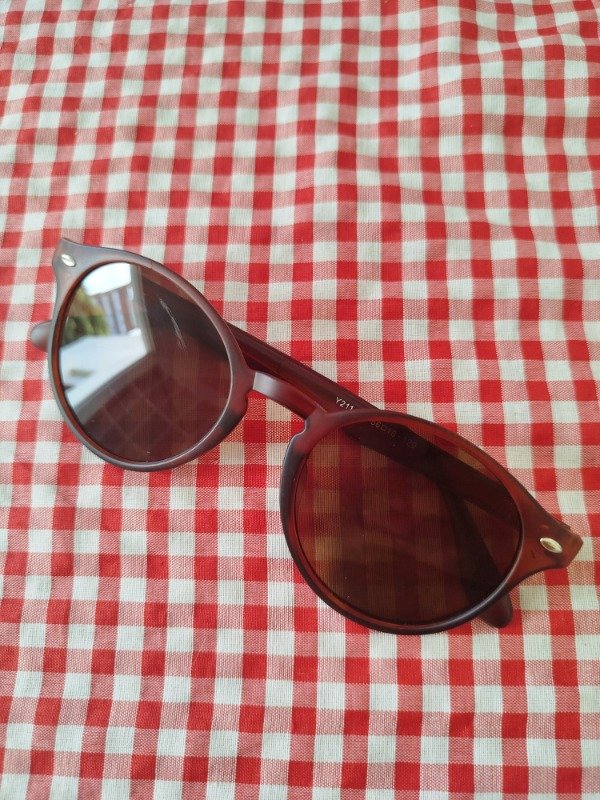 Anteojos de armazón de acetato y cristales marrones, sin graduacion.