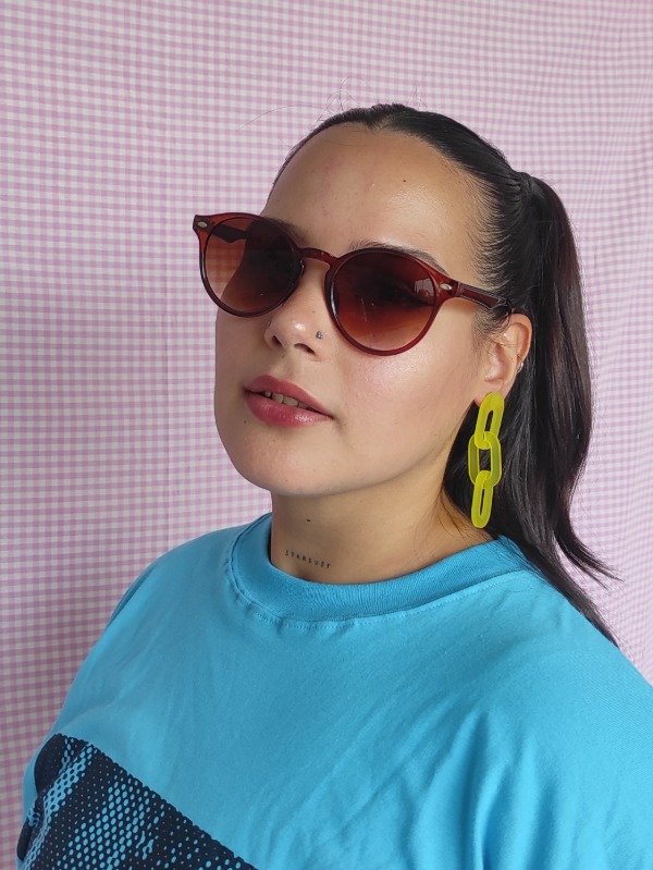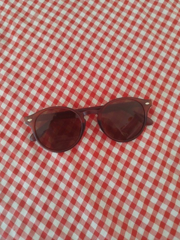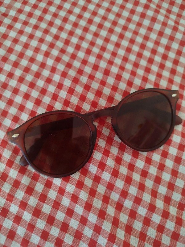 Los anteojos tienen armazón de acetato y cristales marrones. El detalle es un puntito en el cristal izquierdo que no se ve prácticamente y no modifica el uso.