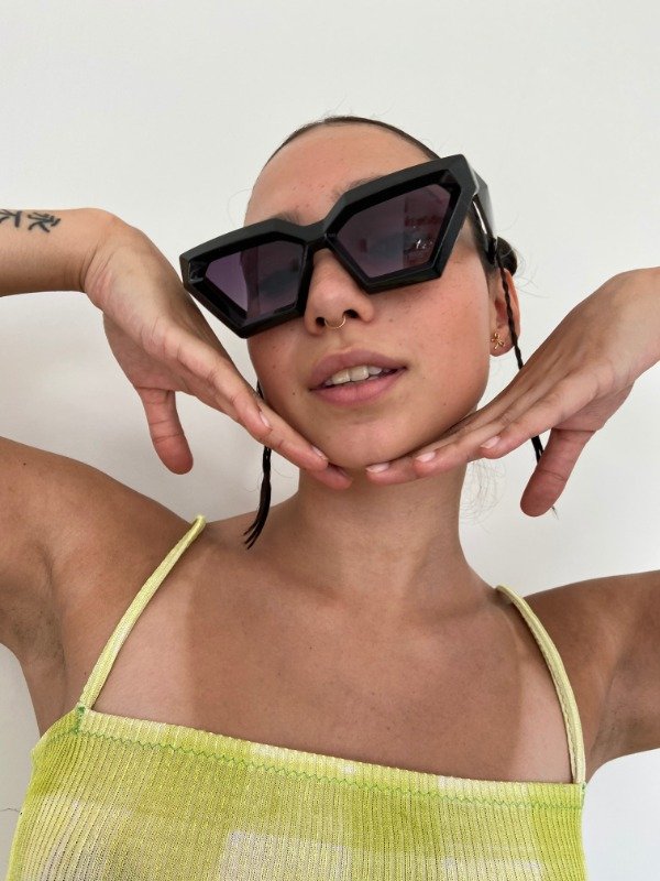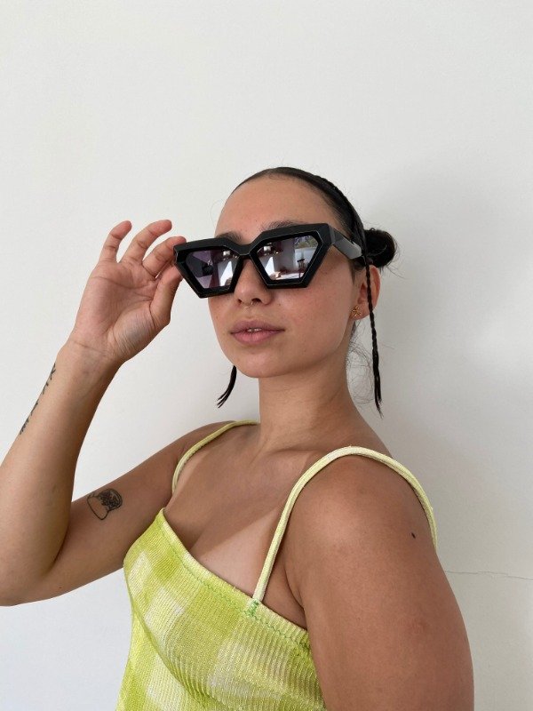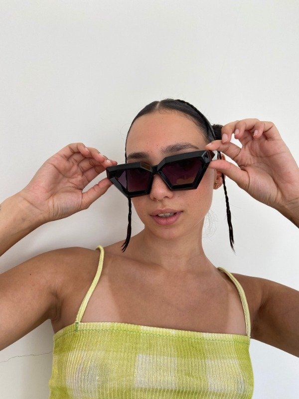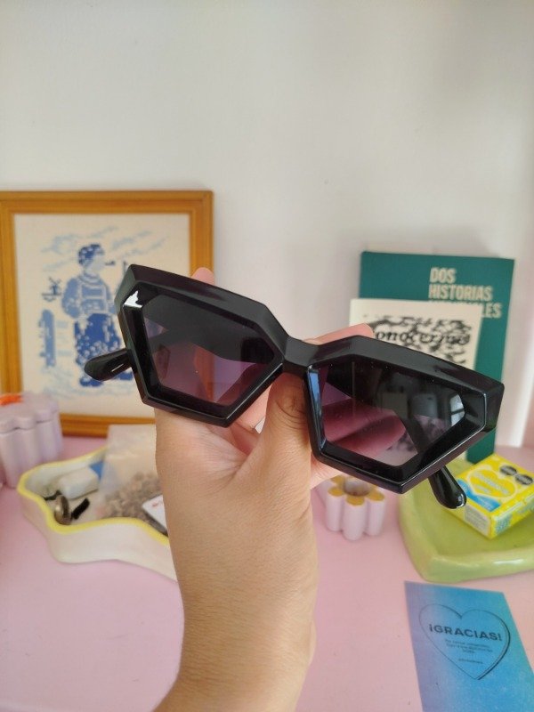 Anteojos premium de armazón de acetato y cristales negros, sin graduacion y bisagras de metal.